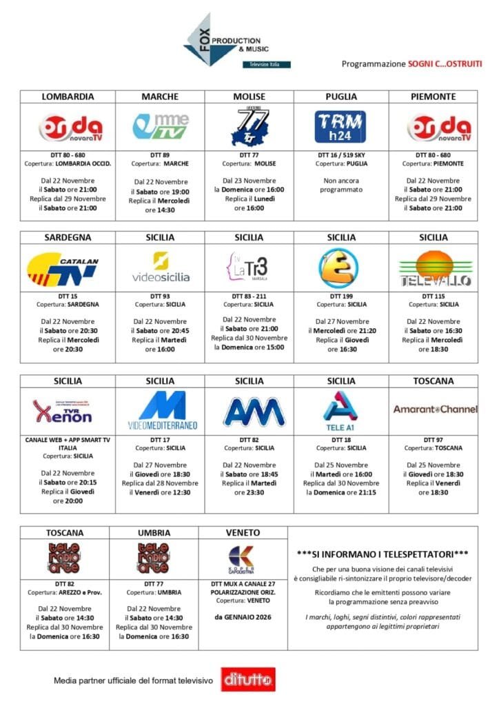 Seguite la rubrica onirica ogni sabato alle 21 sul ch nazionale smartv 231 onda novara tv, con relative repliche sui canali dtt riportati di seguito!